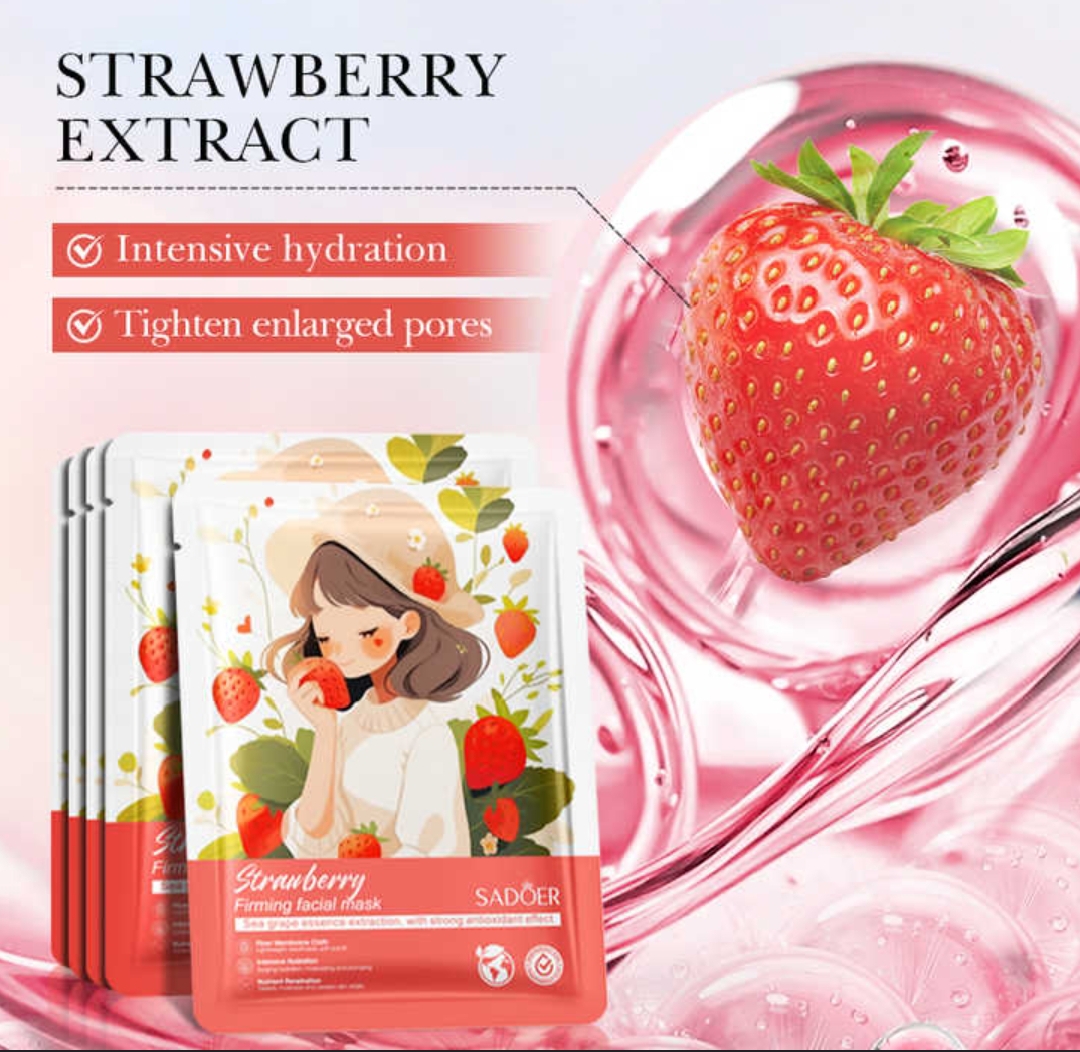 Mascarilla facial reafirmante de fresa de SADOER. Extracto de esencia de uva de mar con fuerte efecto antioxidante. Hidratación intensiva y penetración nutritiva. Deja la piel profundamente hidratada y con vitalidad. Te enviamos directo a tu domicili...